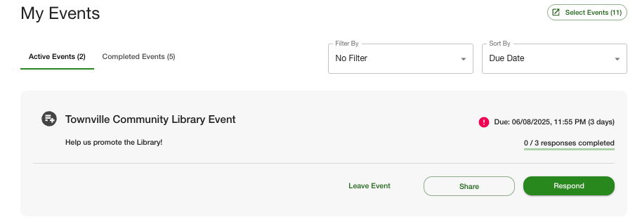 2. Click the Responses Due button from the home page or the Respond button on your My Events page to begin.